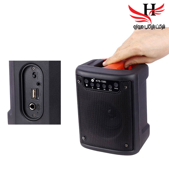 اسپیکر KTS-۱۵۸۰ مجهز به درایو ۳ اینچی با میزان توان خروجی ۱۰ وات،برخوداری از کلید های فیزیکی جهت مدیریت موسیقی، تنظیم ولوم و … مجهز به دسته جهت حمل و جا بجای آسان تر می باشد. تامین انرژی اسپیکر از طریق باتری داخلی با ظرفیت ۱۵۰۰میلی آمپر ساعت قابل شارژ از طریق کابل یو اس بی است.همچنین مجهز به رقص نور زیبا و چند حالته می باشد.