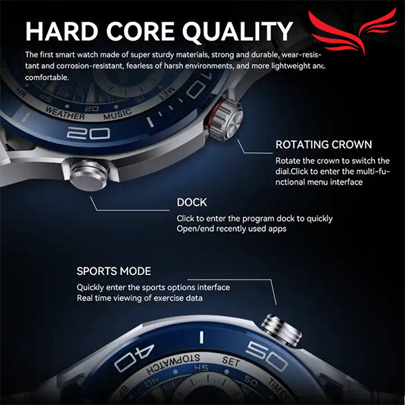 کنترل میزان خواب استاندارد ضد آب IP۶۷ نمایش پیام های فارسی دارای دستیار صوتی امکان اضافه کردن انواع واچ فیس دارای NFC پشتیبانی از زبان فارسی قابلیت مکالمه ، شماره گیری و تماس (دارای میکروفون و اسپیکر) صفحه نمایش ۱/۵ اینچی