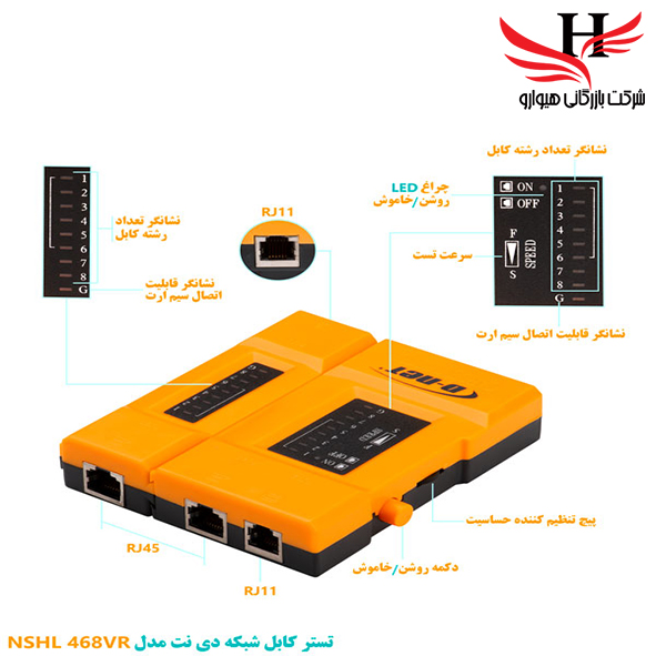 تستر کابل شبکه دی نت مدل NSHL-468VR را باید یکی از نیازهای اصلی مهندسان شبکه دانست. به کمک این دستگاه میتوانید از صحت عملکرد خود در سوکتزنی کابلها اطمینان حاصل کنید. در صورتی که عیبیابی یک شبکه به شما واگذار شدهاست میتوانید از درستی عملکرد کابلها مطمین شوید و به سراغ مراحل بعدی عیبیابی شبکه بروید. از امکاناتی که این تستر در اختیار مصرفکننده قرار میدهد، تست سوکت RJ45 (کابل LAN) و RJ11 (کابل تلفن) است. از آنجایی که این کابلها، از تعدادی سیم تشکیل شدهاند، امکان وقوع اشتباه انسانی در سوکتزدن همواره وجود دارد که با وجود این دستگاه تستر میتوان از وقوع اشتباه مطلع شد. شما به عنوان کاربر این دستگاه می توانید از وقوع اشتباه در اتصال، اتصال کوتاه (اتصالی) و عدم اتصال صحیح باخبر شوید و در جهت رفع مشکل اقدام کنید. قسمت راه دور این تستر را میتوان برای کابلهایی به طول 300 متر هم مورد استفاده قرار داد که متراژ ایدهآلی است. انرژی برق مورد نیاز تستر به وسیلهی یک عدد باتری کتابی 9 ولتی تامین میشود که تا مدتها از عهده راهاندازی دستگاه بر خواهد آمد. اگر یک مهندس شبکه هستید، تستر شبکه دی نت یکی از آن چیزهایی است که باید همواره به همراه داشتهباشید.