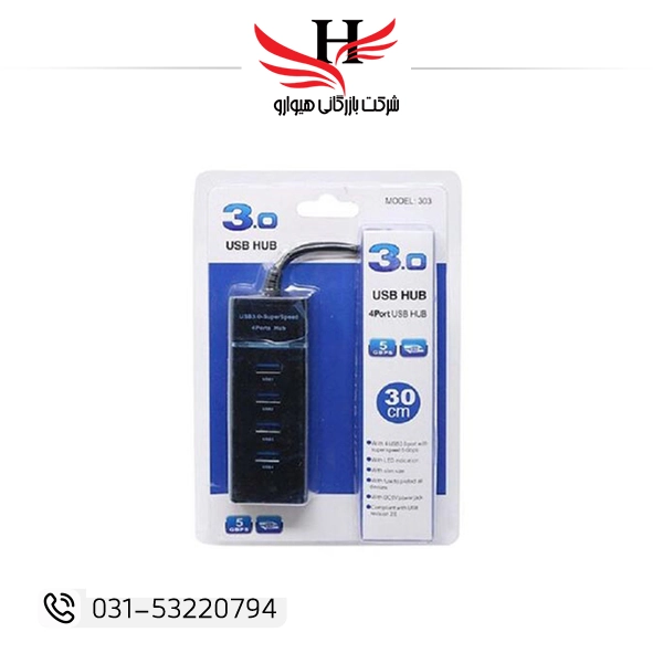 هاب سیمی 4 پورت مای گروپ مدل 303 با رابط USB 3.0 و کابل 120 سانتیمتری، گزینهای کاربردی برای افزایش تعداد پورتهای USB در لپتاپ و کامپیوتر است. مناسب خرید...
