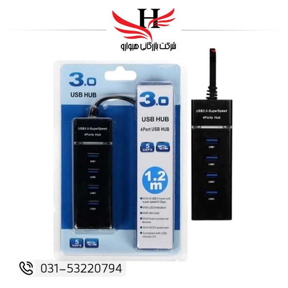 هاب سیم دار 4 پورت کلیددار USB0.3 با کیفیت بالا و گارانتی