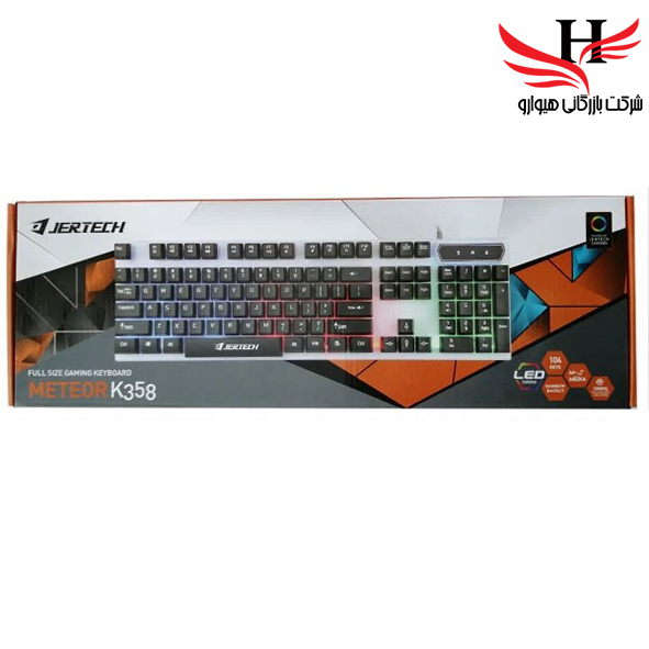 کیبورد مخصوص بازی جرتک مدل K358 طراحی بسیار زیبایی همراه با بک لایت دارد که در هنگام اتصال به سیستم از طریق پورت USB روشن می شود. دارای 104 کلید مکانیکی بوده که جذابیت بازی های کامپیوتری را برای شما افزایش می دهد. حروف فارسی حک شده روی کلید های این کیبورد تایپ فارسی را برای شما راحت تر می کند. این محصول از طریق اتصال سیمی و به وسیله درگاه USB به کامپیوتر متصل می شود.