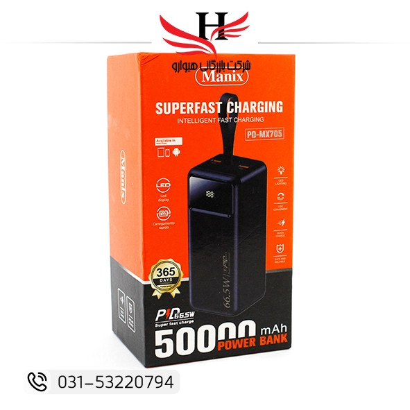 Manix MX705۵۰۰۰۰mAh۶۶.۵W۷ظرفیت فوق‌العاده بالا، کابل داخلی