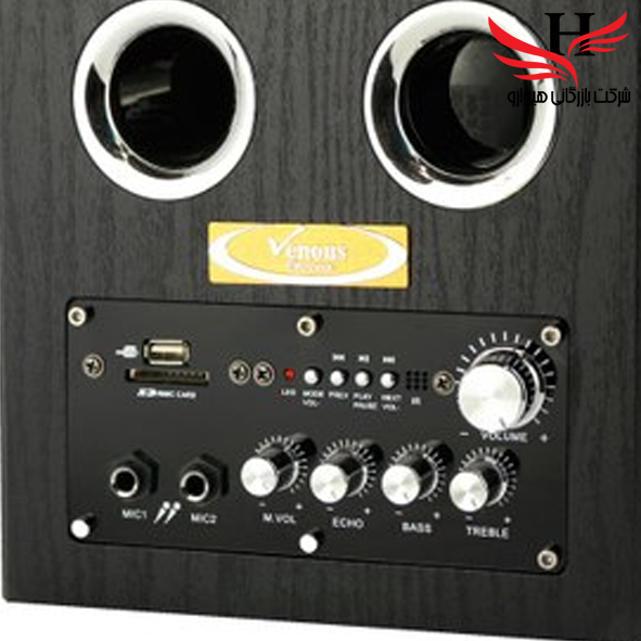 اسپیکر بی سیم 2 تکه ونوس مد PV-SB500 دارای ریموت کنترل و دو عدد ورودی میکروفن است.