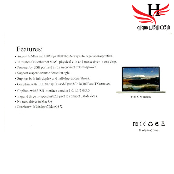 مشخصات USB3.0 TO Hub 3port USB 3.0 with Gigabit ethernet :