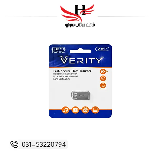 فلش مموری Verity V812 ظرفیت 32 گیگابایت یک مدل پرطرفدار و باکیفیت از برند وریتی است که با سرعت مناسب، طراحی جمع‌وجور و دوام بالا، انتخابی عالی برای ذخیره‌ساز...