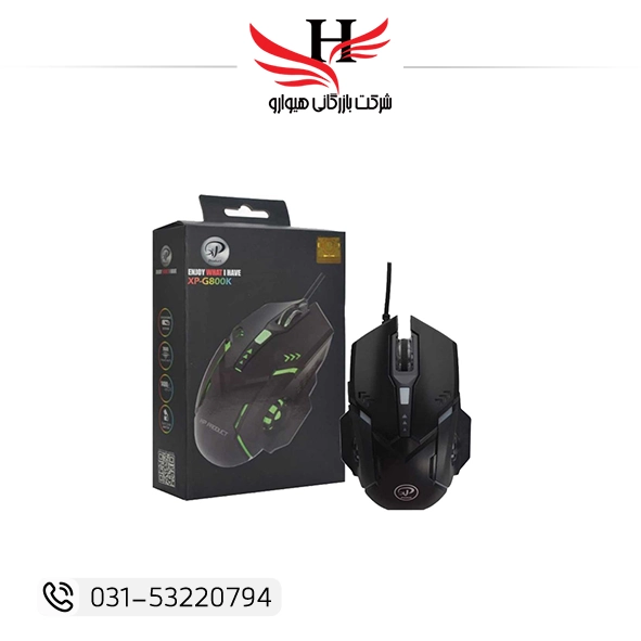 ماوس سیم دار گیمینگ XP-G800N با نور RGB و دکمه‌های تنظیم DPI، عرضه عمده توسط هیوارو در شهرضا، استان اصفهان و تهران